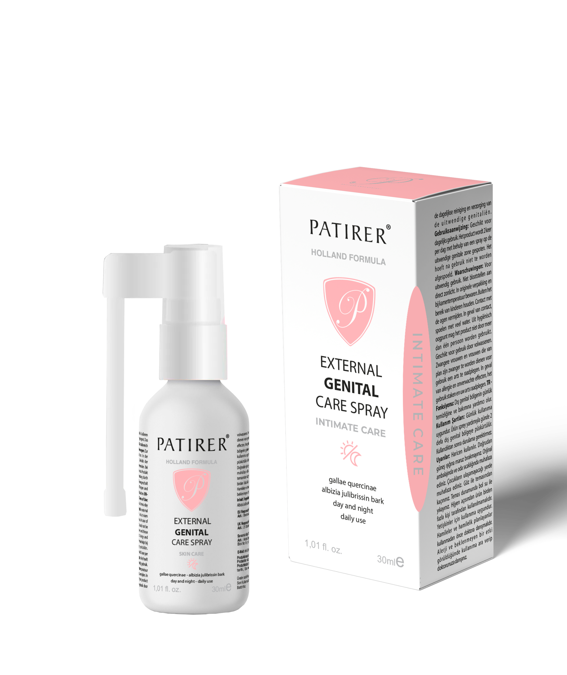 Function: Hygienic spray that cares and repairs the genital area. Terms of Use:  Suitable for daily use. Can be used 2 times a day. It does not require washing and rinsing after use. Warnings: Do not expose to direct sunlight. Store in original packaging and at room temperature. Keep out of the reach of children. Avoid contact with eyes. In case of contact, rinse with plenty of water. Ingredients: Aqua, Thuja Occidentalis Bark Extract, Albizia Julibrissin Bark Extract, Potassium Sorbate, Sodium Benzoate