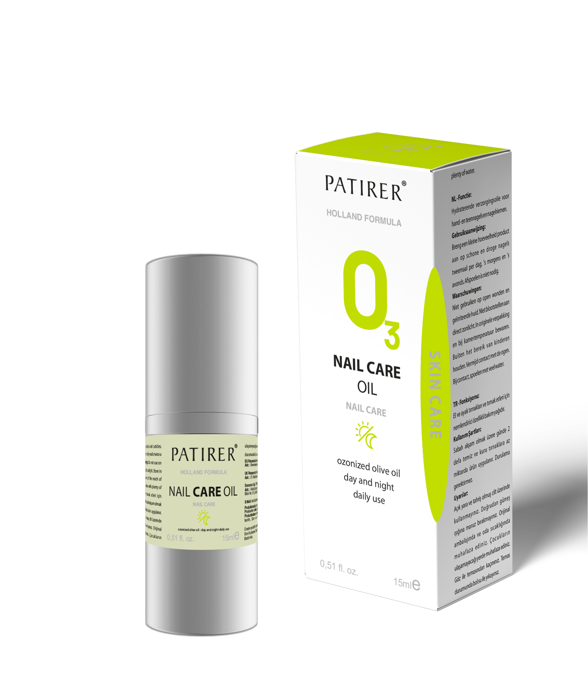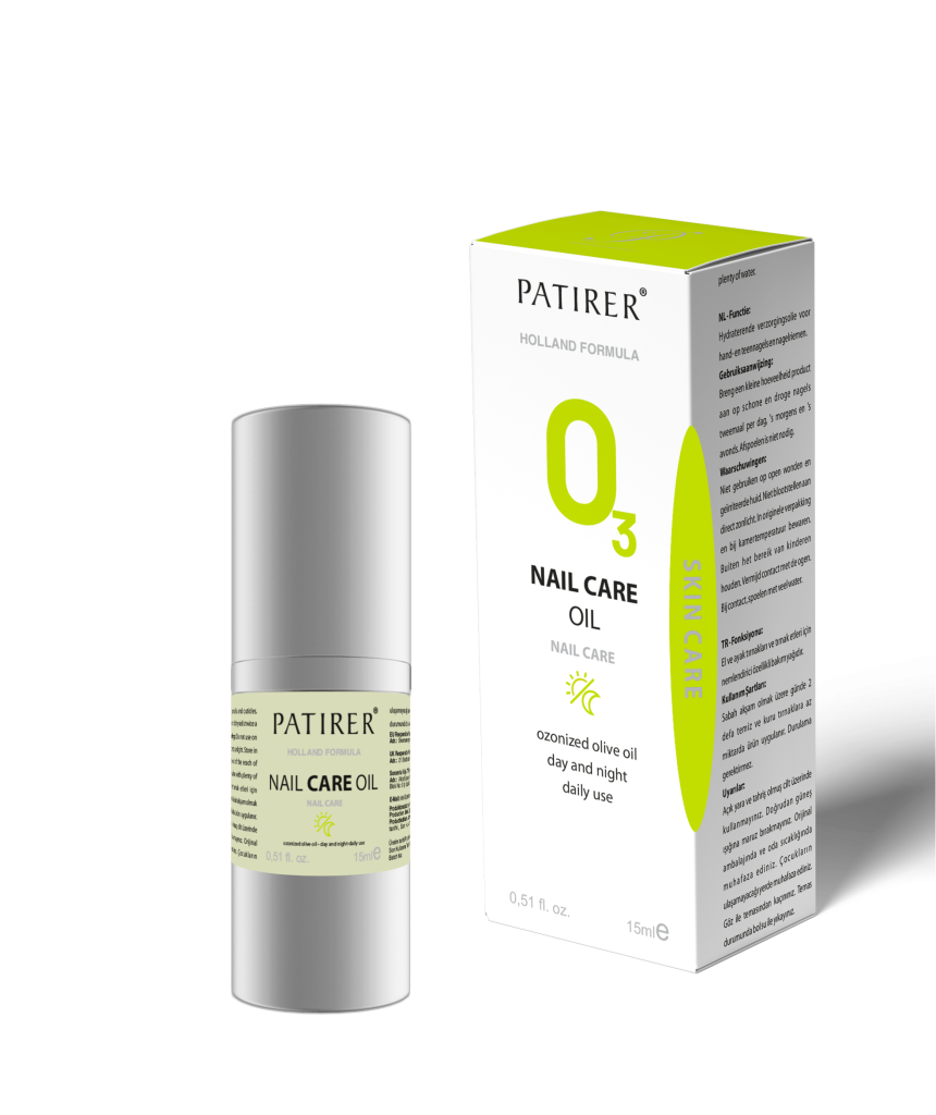 Function: Moisturising care oil for hand and toenails. Terms of Use: It is applied to clean and dry nails twice a day, morning and evening. Warnings: Do not expose to direct sunlight. Store in original packaging and at room temperature. Keep out of the reach of children. Avoid contact with eyes. In case of contact, rinse with plenty of water. Do not use on open wounds and irritated skin. Ingredients: Ozonized Olive Oil.